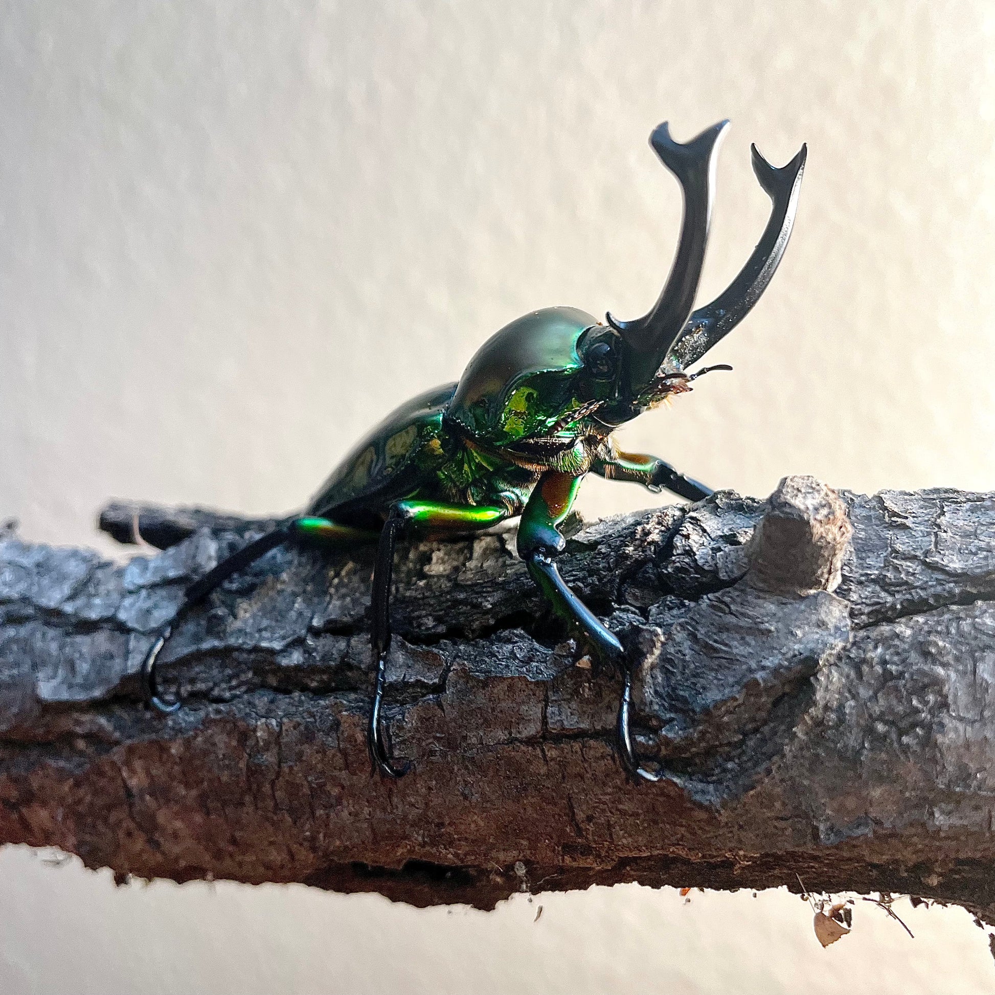 Stunning rainbow stag beetle – Its ever-changing, metallic luster shines in shades of cream, red, green, teal, and black.