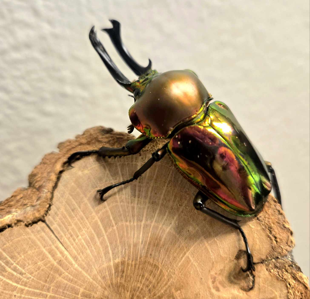Stunning rainbow stag beetle – Its ever-changing, metallic luster shines in shades of cream, red, green, teal, and black.